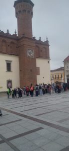 Choć poranek zapowiadał się deszczowo, pogoda okazała się łaskawa co pozwoliło seniorom w pełni cieszyć się wycieczką do Tarnowa. Zwiedzanie rozpoczęliśmy od przejażdżki meleksem po Tarnowie. Dzięki temu wygodnemu środkowi transportu seniorzy mogli zobaczyć najważniejsze zabytki miasta – rynek z renesansowymi kamienicami, katedrę, pomnik generała Bema, Park Strzeleckiego, Park Sanguszki. Przewodnik barwnie opowiadał o dziejach Tarnowa, przybliżając jego znaczenie na przestrzeni wieków. Kolejnym punktem programu było Muzeum Historii Tarnowa, gdzie seniorzy mogli zapoznać się z bogatą kolekcją eksponatów dokumentujących życie miasta od średniowiecza po czasy współczesne. Uczestnicy mieli okazję zobaczyć wystawy poświęcone historii miasta, zabytkom oraz ważnym postaciom związanym z Tarnowem. Szczególne zainteresowanie wzbudziła ekspozycja dotycząca okresu międzywojennego oraz dzieje społeczności żydowskiej.