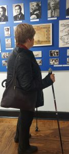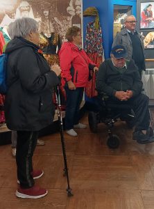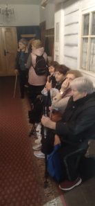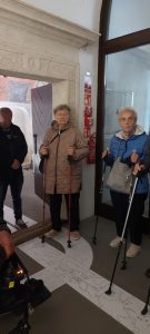 Kolejnym punktem wycieczki było Muzeum Etnograficzne, gdzie mieli okazję zapoznać się z wyjątkową wystawą poświęconą historii i kulturze Romów – jednej z najstarszych mniejszości etnicznych w Polsce. Ekspozycja rozpoczęła się od przedstawienia tragicznych losów Romów w czasie II wojny światowej. Uczestnicy poznali dramatyczne fakty dotyczące ich prześladowań, deportacji oraz masowej zagłady w obozach koncentracyjnych. Wystawa ukazywała, jak uprzedzenia i stereotypy prowadziły do marginalizacji tej społeczności, a w czasie wojny – do systematycznego wyniszczenia. Szczególnie poruszające były relacje świadków oraz fotografie dokumentujące romski Holokaust, który przez lata pozostawał mało znanym rozdziałem historii. Równocześnie muzeum zaprezentowało bogactwo kultury romskiej – barwne stroje, tradycyjne instrumenty muzyczne, rękodzieło oraz elementy codziennego życia. Seniorzy z zainteresowaniem słuchali opowieści o romskich zwyczajach, silnych więzach rodzinnych, wędrownym trybie życia oraz duchowości, która odgrywa ważną rolę w tej społeczności. Pani Przewodnik podkreślała, że mimo trudnej historii Romowie zachowali swoją tożsamość, język i tradycje, które są żywe do dziś. Wizyta w Muzeum Etnograficznym była dla uczestników nie tylko lekcją historii, ale także okazją do refleksji nad wartością różnorodności kulturowej i potrzebą wzajemnego szacunku. Seniorzy opuścili muzeum wzbogaceni o wiedzę, ale przede wszystkim poruszeni głębokim przekazem wystawy.