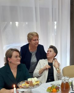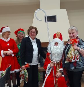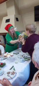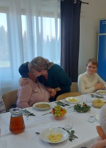 Najwięcej radości przyniosła wizyta Mikołaja, który pojawił się z elfem i panią Mikołajkową. Każdy otrzymał paczkę, a uśmiechy i wzruszenie mówiły same za siebie. Wieczór dopełniło wspólne kolędowanie — spokojne, serdeczne, pełne ciepła. Spotkanie stało się pięknym momentem bycia razem, rozmów i świątecznej bliskości.